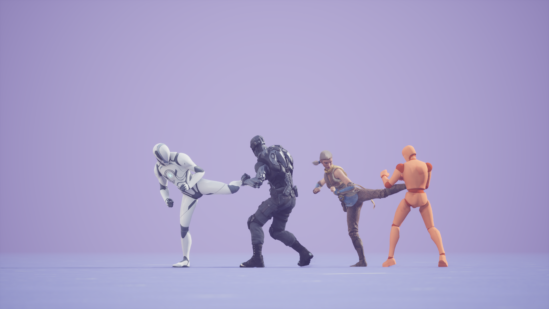 A diverse set of powerful melee strikes including jabs, hooks, uppercuts, haymakers, front kicks, side kicks, spinning back fists, and superman punches — each animated with impact and style. Variations for unique combat personalities have been added, giving developers creative control over how each character fights. To support gameplay clarity and feedback, the Strike Pack also includes dedicated hit reactions for every strike type, allowing for quick implementation of combat feedback loops. Ideal for stylized combat, fighting games, and cinematic animation systems.